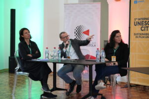 The International Forum in Bitola gathered film professionals, experts, and cultural practitioners from eight UNESCO Creative Cities of Film – Sarajevo, Potsdam, Galway, Valladolid, Łódź, Sofia, Terasa, and Bitola – alongside local participants. More than 30 representatives joined discussions, screenings, and networking activities dedicated to exploring how the film and creative industries can reduce their environmental footprint and promote sustainable practices.